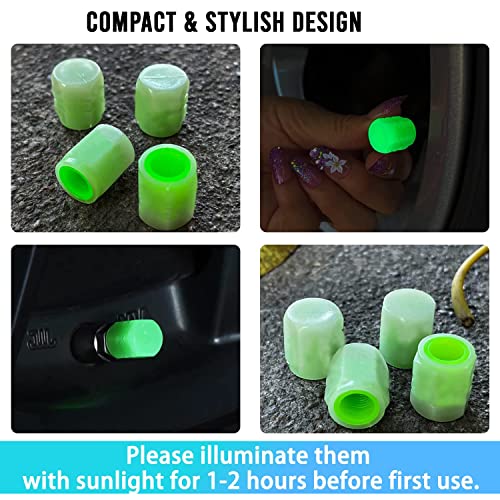 غطاء صمام الإطارات الفلورسنت TW-5014 من تايرويل، أغطية عجلات مضيئة مضيئة مثالية للسيارات والدراجات (عبوة من 8 قطع، أخضر)