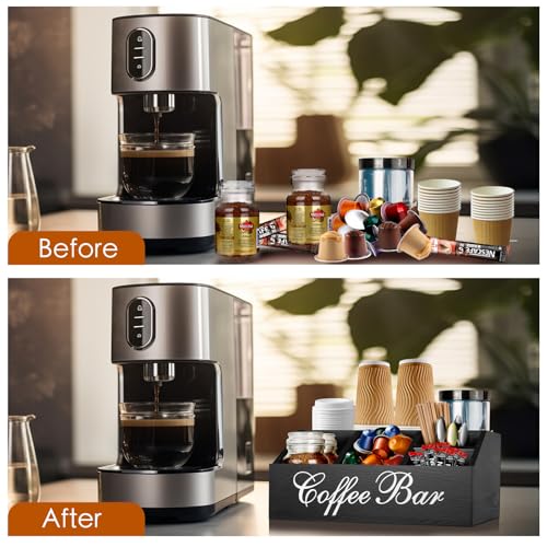 - 【منظم قهوة أنيق بنمط المزرعة】منظم القهوة هذا ليس عمليًا لتخزين أساسيات القهوة فحسب، بل يعمل أيضًا كقطعة مركزية أنيقة. يضيف تصميمه المنحوت الفريد واللمسة النهائية السوداء الأنيقة لمسة من الأناقة البسيطة إلى أي مساحة. مصمم بمزيج من الفن والعملية، من المؤكد أن حامل كبسولات القهوة الخاص بنا سيعجب ضيوفك ومحبي القهوة على حد سواء.