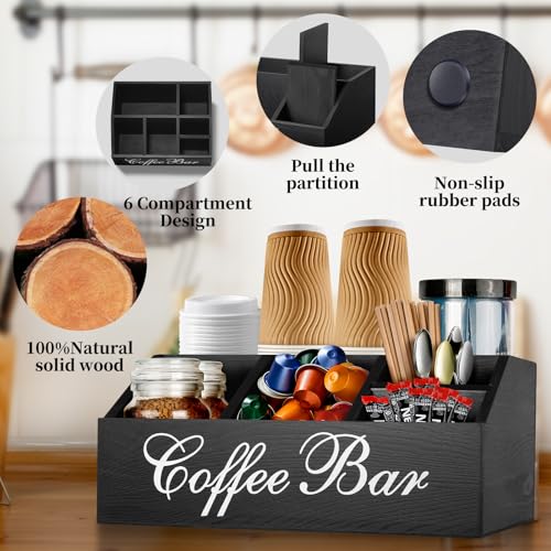 - 【قاعدة قهوة عالية الجودة وسهلة الصيانة】 مصنوعة من الخشب الصلب الفاخر، منظمات القهوة والشاي الخاصة بنا قوية ومتينة ومقاومة للتشوه. الحرفية المحسنة والسطح المطلي يجعلانها مقاومة للماء وناعمة وسهلة التنظيف. يتضمن المنظم أيضًا 4 سجادات مضادة للانزلاق لإبقائه في مكانه بأمان على سطح الطاولة.