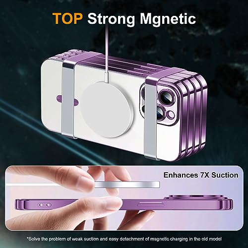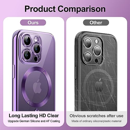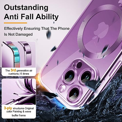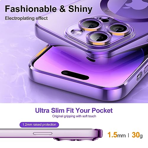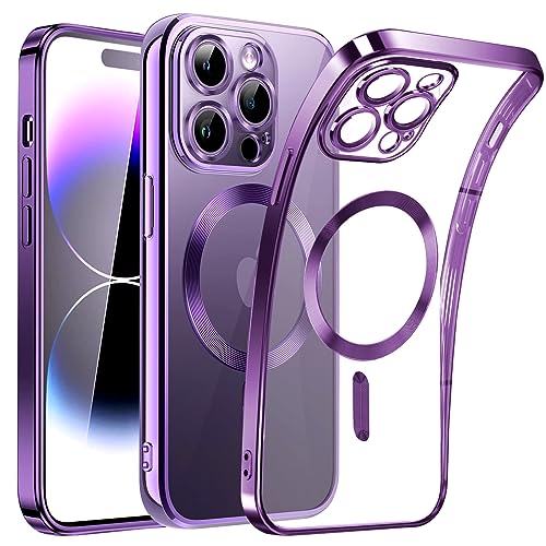جراب مغناطيسي شفاف لموبايل ايفون 14 برو مع ماج سيف [مقاوم للاصفرار] [غطاء كاميرا مدمج] سيليكون مقاوم للصدمات ومضاد لبصمات الأصابع والخدوش شحن لاسلكي من سيوجي أرجواني غامق