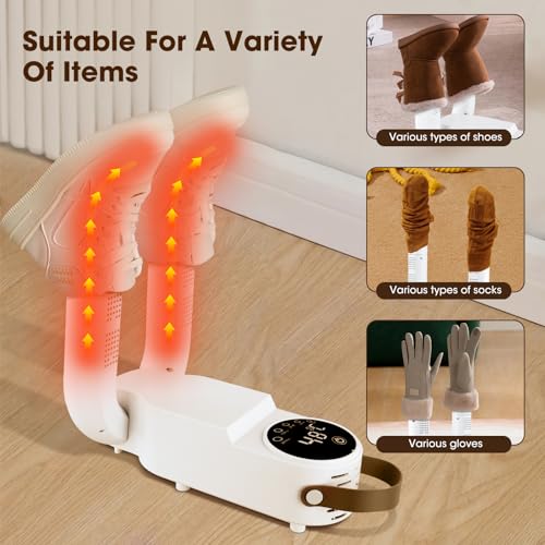 مجفف أحذية كهربائي ومدفئ للقفازات، إيقاف تلقائي مؤقت 3/6/9 ساعات، مجفف أحذية محمول للأحذية المتعرقة، يزيل الروائح الكريهة