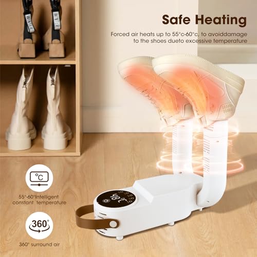 - 🏆【تجفيف فعال بالهواء الدافئ 360 درجة】-- يضمن مجفف الأحذية الخاص بنا تجفيف شامل وفعال دون أي بقع مفقودة. تسمح آلية التجفيف المقلوبة بزاوية 360 درجة بدوران الهواء الدافئ من إصبع القدم إلى الكعب، مما يجمع الحرارة بشكل فعال ويجفف حذائك بشكل أسرع. قل وداعًا لمشاكل الأحذية المبللة، سواء كان يومًا ممطرًا في يوليو أو يومًا جافًا ومشمسًا في أغسطس. سيكون مجفف الأحذية الخاص بنا رفيقك الموثوق به طوال العام.