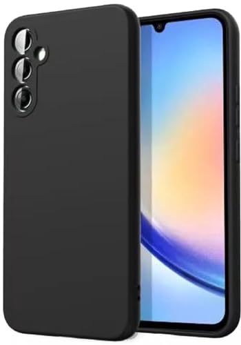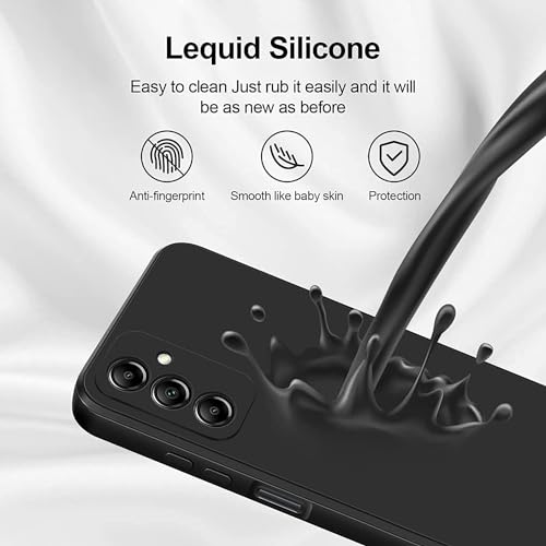 جراب حماية خلفي من السيليكون السائل المضاد للصدمات بتصميم مبطن فرو وغطاء كاميرا كامل لموبايل (سامسونج جالاكسي A54) بلون أسود