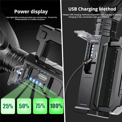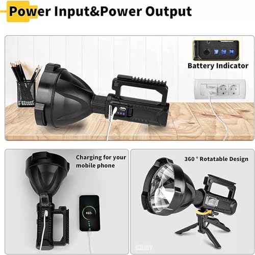 - كشاف يدوي فائق السطوع: يتميز الكشاف اليدوي بخرز مصباح سلسلة XHP/P50/P70، مما يوفر ضوءًا ساطعًا بشكل مثير للإعجاب يمكنه إضاءة المسارات حتى في أحلك الليالي. مع مسافة شعاع تتجاوز 500 متر، فإنه يضمن الرؤية على مسافات طويلة.