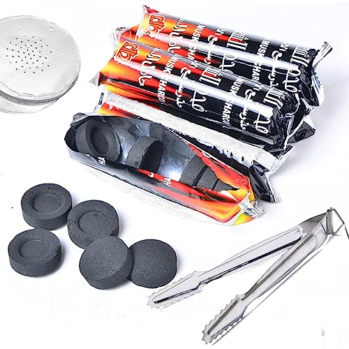 في او في سي اي جي مجموعة أقراص فحم مع ملاقط و15 قطعة من فويل الالومنيوم، لفات اشتعال سريع فحم مدخن، قطر 33 ملم، 30 قطعة (3 لفات)