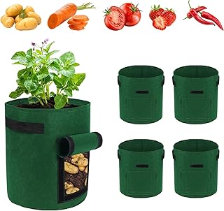 Potato Grow Bag, 5 Pack 5 Gallon Vegetable Grow Plant Bags Breathable Garden Growing Bag Planting Tomato Fabric Pots with Strap Handles and Flap for Vegetables, Fruits, Home Grow Bag (Dark Green)