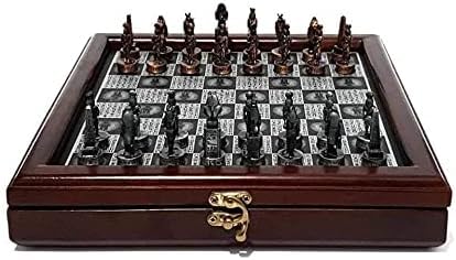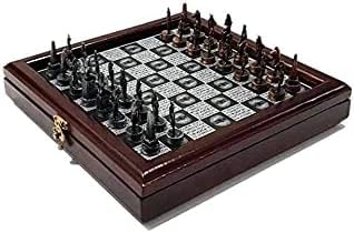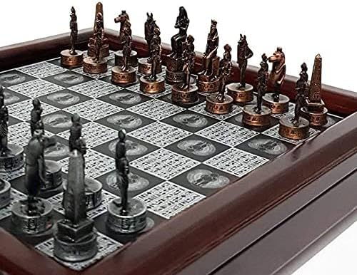 طقم شطرنج فرعوني فاخر — قطع معدنية ثقيلة بتصميم حضارة مصر القديمة، مع رقعة خشب طبيعية قابلة للطي وصندوق تخزين بلمسة كلاسيكية أنيقة من أحمد & محمد (30 سم)