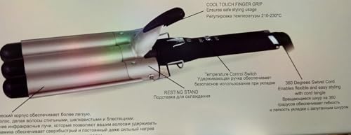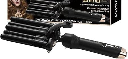 مكواة تجعيد الشعر/ ثلاثية الأصابع/ سلك دوار ٣٦٠ درجة/ متعددة الوظائف للتمليس و للتمويج والتجعيد
