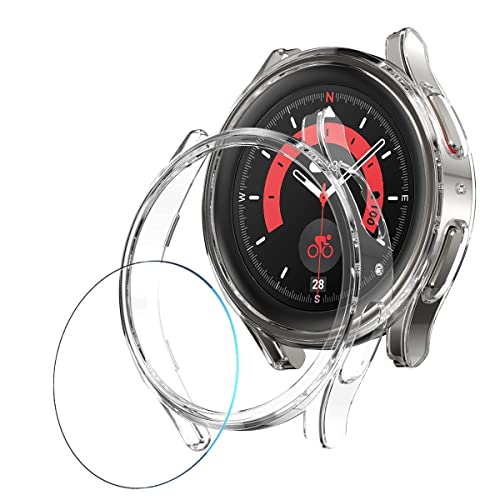 جراب حماية متوافق مع ساعة سامسونج جالاكسي ووتش 5 برو 45 ملم بدرجة صلابة 9 من البولي كربونات نحيف بالكامل زجاج مقوى لساعة دلـع موبايلك شفاف