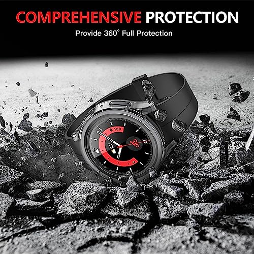 - 【التوافق】تم تصميم الجراب الصلب الخاص بنا مع شاشة حماية من الزجاج المقوى خصيصًا لساعة سامسونج جالاكسي ووتش برو 5 مقاس 45 ملم.