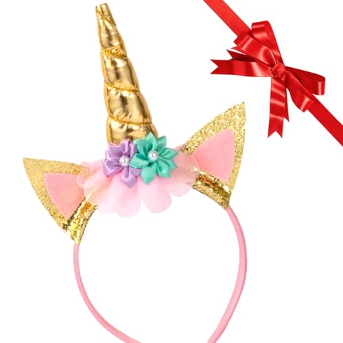 مجموعة عيد الميلاد بطابع يونيكورن (وحيد القرن) للبنات، طوق رأس وحيد القرن بلون ذهبي ووردي لامع من ليمونسي، من لوازم الحفلات وعيد الميلاد والديكورات
