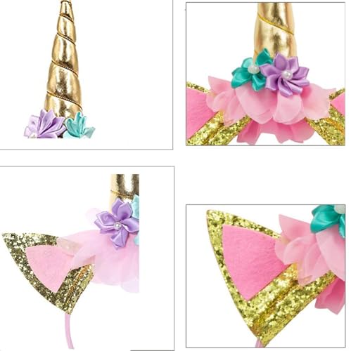 - شريط رأس وحيد القرن الذهبي الجميل - امنح طفلتك الصغيرة الاهتمام الذي تستحقه من خلال جعلها تبرز مع عصابة الرأس الذهبية المتلألئة على شكل قرن اليونيكورن، اجعلها تشعر وكأنها أميرة اليونيكورن
