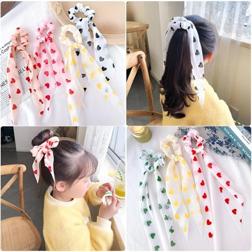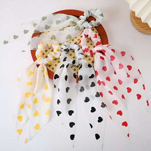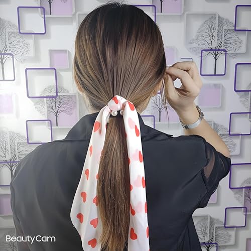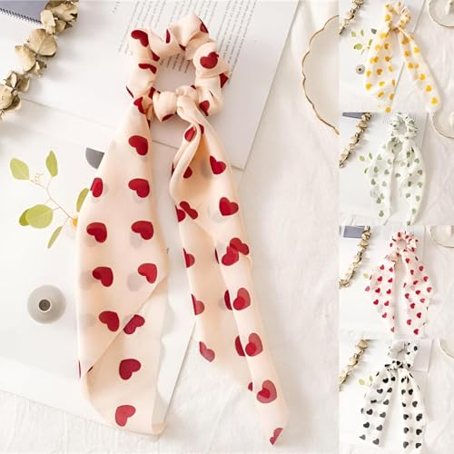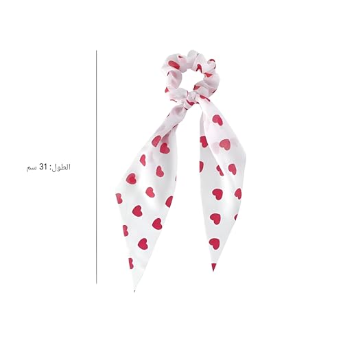 توكة شعر بشريط طويل- سكارف ساتان جميل بطبعة قلب خوخي للنساء والبنات، ربطات شعر مثالية واكسسوارات شعر مرنة لتصفيفات أنيقة (عدد 1 قطعة باللون الموضح).