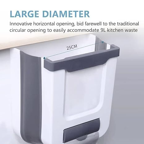 - لن تشغل سلة المهملات القابلة للطي مساحة ثمينة في المطبخ. عند عدم استخدامها، يمكنك طيها وفتحها عند استخدامها