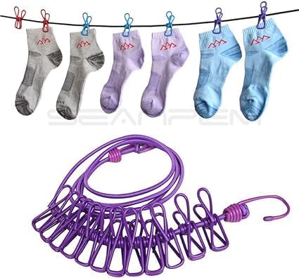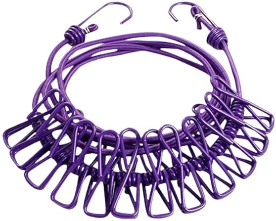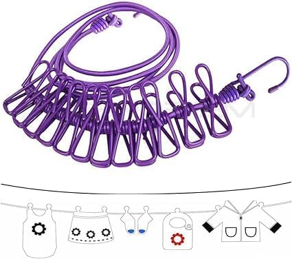 حبل غسيل مرن سهل الحمل مناسب للسفر مع 12 مشبك