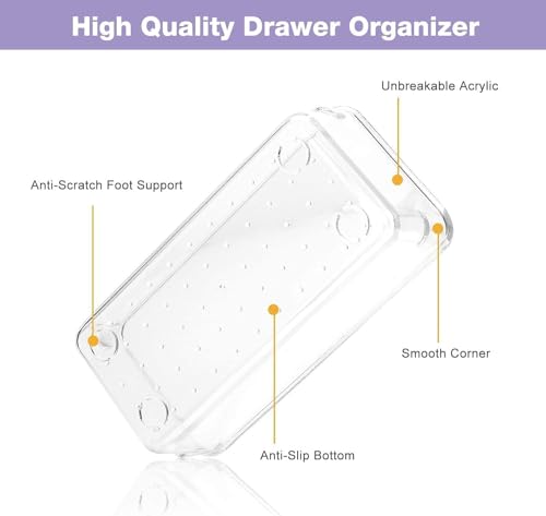 - وفر وقتك - يمكن لمنظمات الأدراج الشفافة توفير وقتك لتنظيم أغراضك والعثور عليها، من السهل العثور على أغراضك واستخدامها في الدرج، والحفاظ على مساحتك أنيقة، وتساعدك على الحصول على نمط حياة أنيق والاستمتاع بالمزيد.