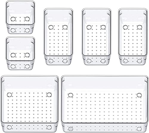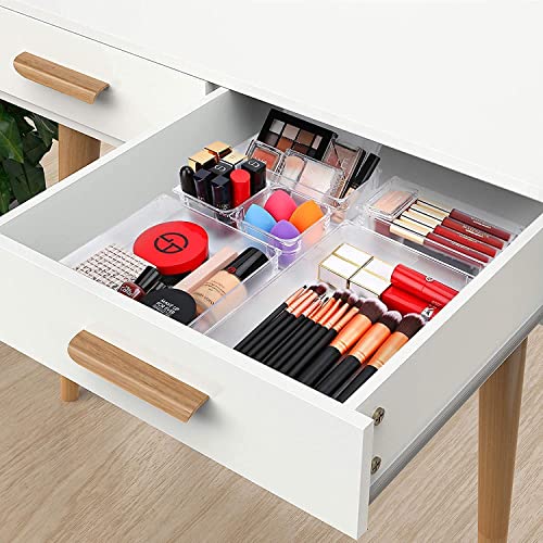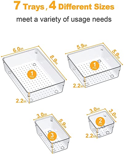 مجموعة منظم ادراج من انتيسيا - 7 قطع من منظمات ادراج المكتب، صينية تخزين ادراج بلاستيكية غير قابلة للكسر لغرفة النوم والحمام وفرش المكياج والمجوهرات والمكتب وصندوق مستحضرات التجميل