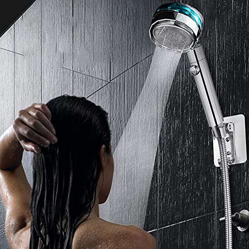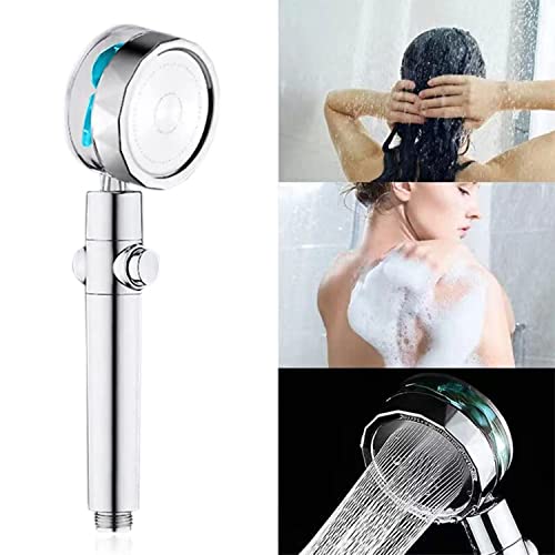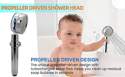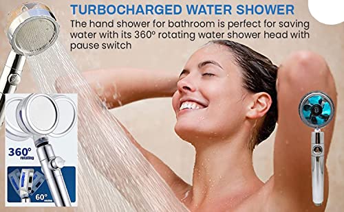 دش يدوي للحمام من كونسيبتا، دش موفر للمياه عالي الضغط مع 2 فلتر، دش يدوي، رأس دش مياه دوار 360 درجة مع مفتاح إيقاف مؤقت، شاحن توربيني - فضي