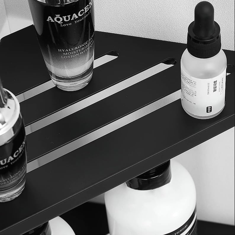 رف زاوية من الفولاذ المقاوم للصدأ 304 بانوكس 3 قطع المقاس: 20×8.5×2.5 سم العرض × العمق الارتفاع أسود