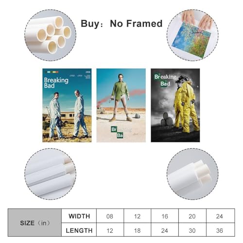 3 قطع من بوستر بريكنج فينتاج فيلم سيء بوسترات فنية جدارية قماشية لتزيين الغرفة ديكور جمالية مطبوعة مقاس 08 × 12 انش 20 30 سم - طراز 6 نمط-6