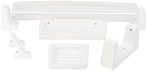 طقم إكسسوارات حمام سيراميك من سارجيمينز، طقم من 6 قطع، أبيض