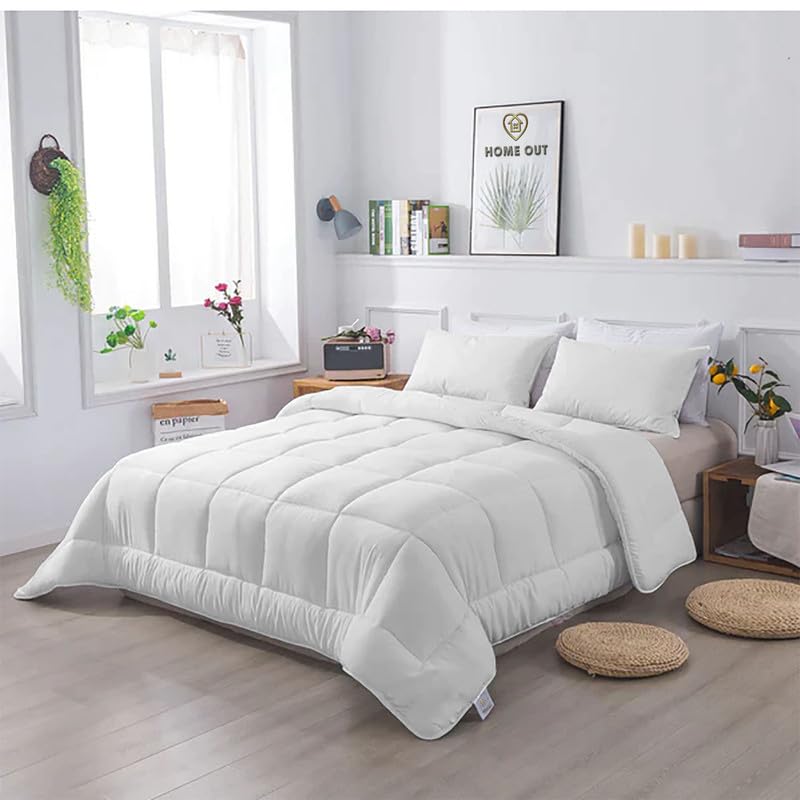 طقم لحاف صيفي من القطن المصري بحشو فايبر فائق النعومة لسرير ماستر من هوم اوت، 2.3×2.4 متر أبيض 3 قطع