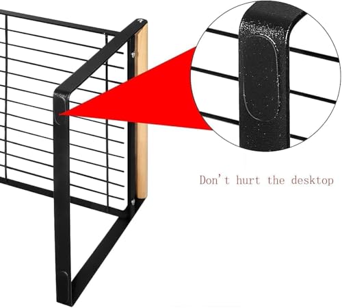 - مزايا منظم سطح الطاولة: يوفر الرف الفولاذي الفردي صفين من المساحة المتاحة للدواليب والمؤن والطاولة. مصنوع من الفولاذ الكربوني السميك والمتين، مع قدرة حمل قوية. طلاء بخاخ بدرجة حرارة عالية، ليس من السهل أن يصدأ. أقصى حمولة هي 30 رطل. يسمح لك التصميم المجوف الأنيق بوضع الأشياء المخزنة لأعلى وأسفل بسهولة، وجعل المكان عصريًا. تخزين وعرض وتجفيف. تجعلها المقابض الخشبية الطبيعية من السهل سحبه من الخزانات أو تحريكه. تصميم قابل للتكديس: الطول 20 بوصة × العرض 8 بوصة × الارتفاع 8 بوصة. يُعد حامل الخزانة هذا عبارة عن رف معدني صغير الحجم، ويمكن تكديسه على رف آخر كبير الحجم. يجعل الستيكر اللاصق غير القابل للانزلاق الموجود في الأسفل الأرفف المكدسة أكثر ثباتًا.