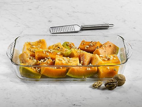- خالي من السموم وآمن: لن يُدخل البورسليكات أي مواد كيميائية إلى طعامك حتى بعد الاستخدام المتكرر. وهذا يجعل الكسرولة الزجاج هذه الخيار الأفضل والأكثر أمانًا لتقديم الطعام الساخن أو حتى لحفظ بقايا الطعام.