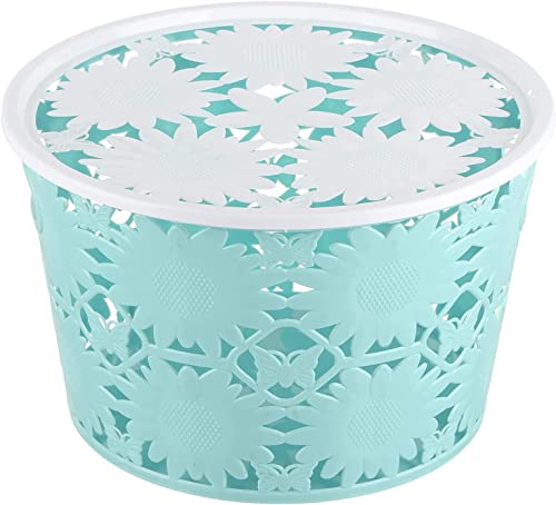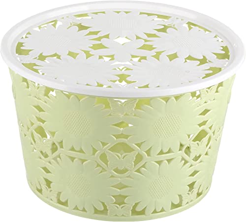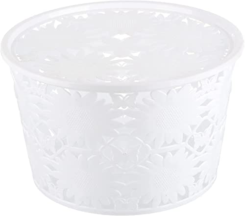 سلة بلاستيك دائرية بتصميم رتان مزودة بيد للحمل قطر 22 سم من الياسين - متعددة الألوان