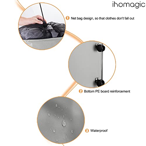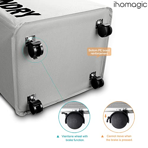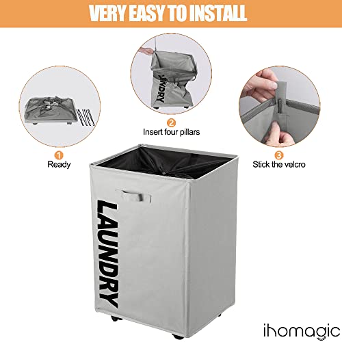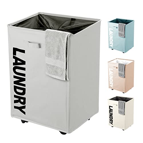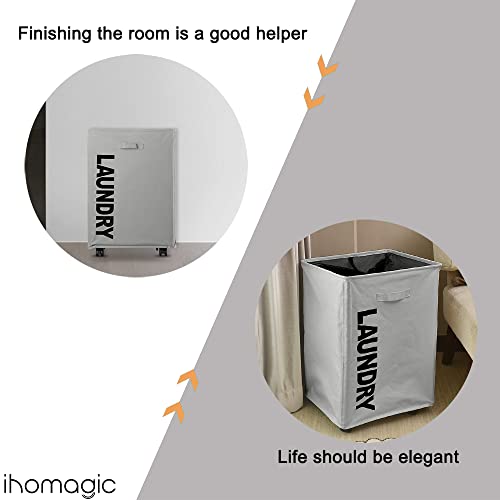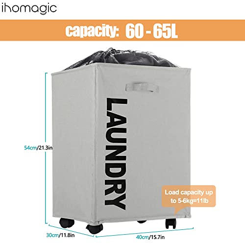 سبت غسيل متسخة بسعة 65 لتر مع عجلات من اي اتش او ماجيك، سبت تخزين قابل للطي من قماش اكسفورد، سلة تخزين كبيرة مقاومة للماء للمنزل والفندق 40 × 30 × 54 سم (رمادي فاتح)
