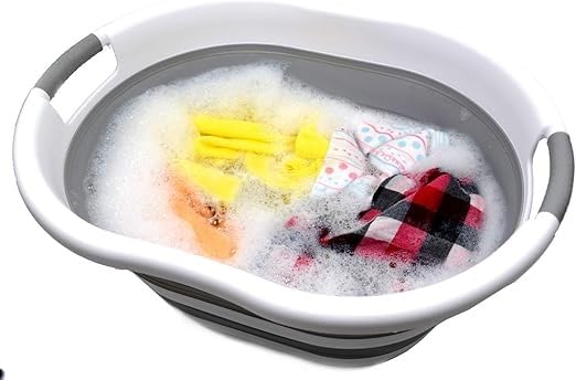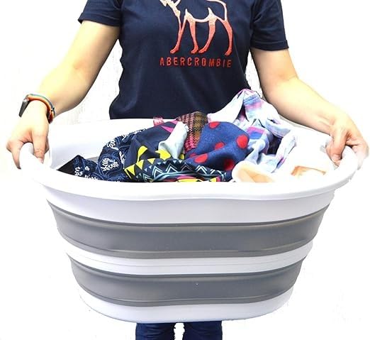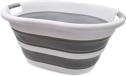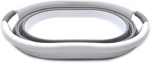 سبت غسيل بلاستيك قابل للطي، سلة حوض بيضاوية، حاوية تخزين / منظم قابل للطي، حوض غسيل محمول، سلة غسيل موفرة للمساحة، 38 لتر