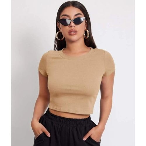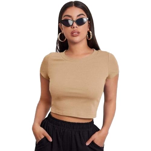 تيشرت من قماش التويل القطني مضلع نصف كم للنساء
