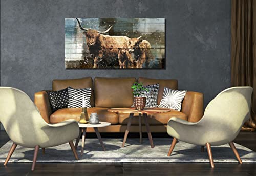 - 【مقاس لوحة فنية جدارية من القماش】 المقاس 40 انش × 20 انش لوحة فنية جدارية بقرة هايلاند، صور بقرة قماشية لتزيين الحائط، لوحة فنية جدارية باللونين الأسود والأبيض