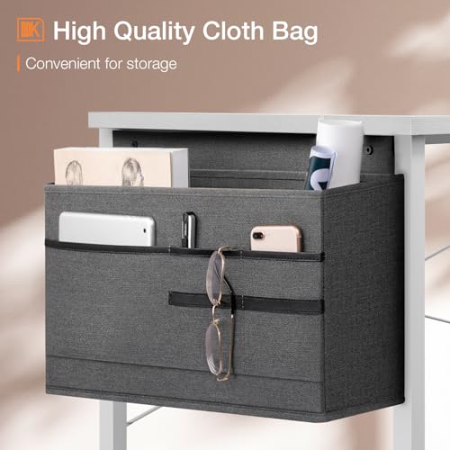 - نقدم لكم هذا المكتب مع مساحة تخزين: تمنحك الشنطة المثبتة على الجانب مساحة تخزين إضافية للكتب والمستلزمات المكتبية لتحسين تنظيم سطح المكتب. على الجهة المقابلة، يوجد خطاف قابل للفصل يسمح لك بتعليق السماعات أو الشنطة.