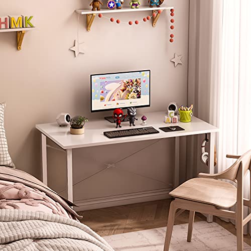 مكتب كمبيوتر صغير للمنزل والمكتب والكتابة ترابيزة عصرية بسيطة مع شنطة تخزين وخطاف لسماعة الرأس من او دي كيه 1.2 متر أبيض + أرجل بيضاء