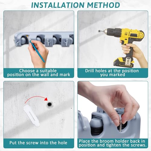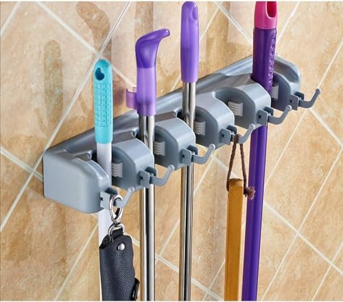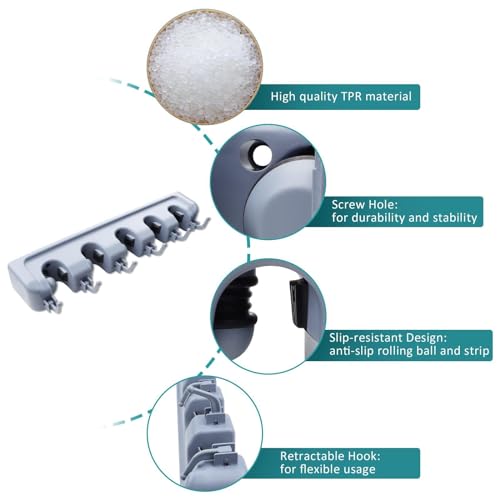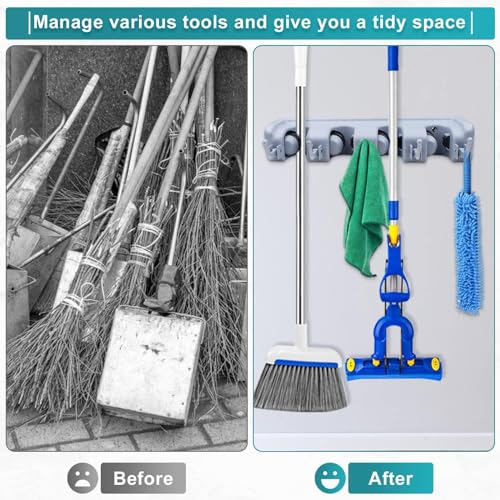 - حامل مكنسة مثبت على الحائط للتخزين المنظم للمكانس والمماسح والمكانس الكهربائية