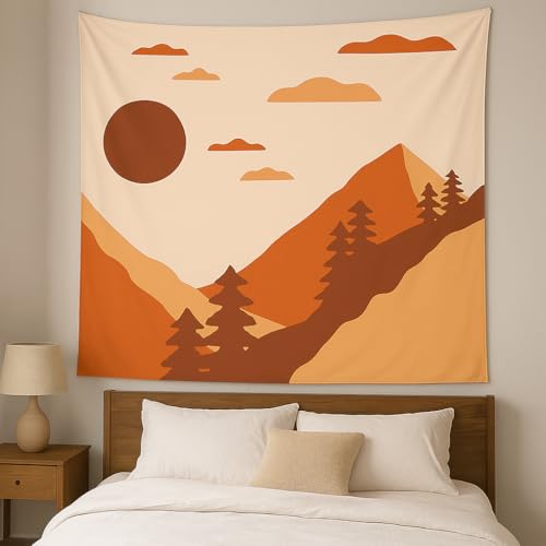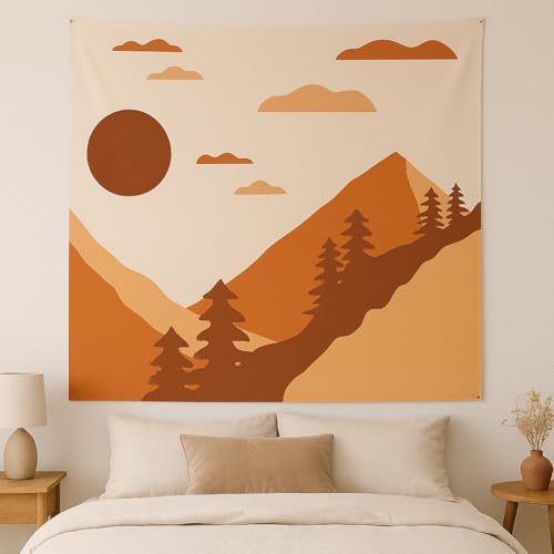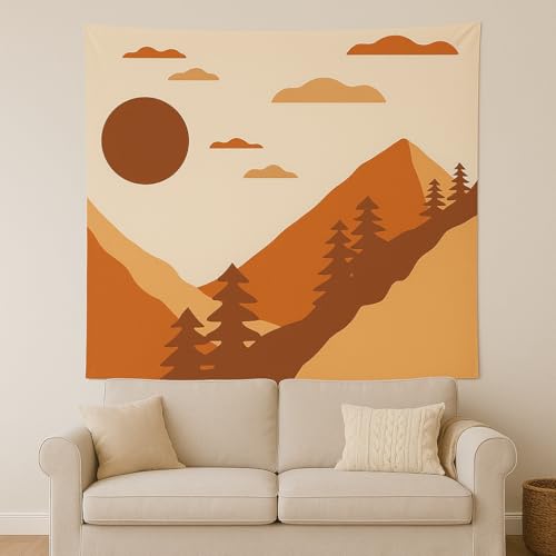 سجادة حائط بتصميم جبل مع غروب الشمس مقاس 1.5 م × 1.5 م، لوحة فنية طبيعية للحائط بتصميم بسيطة لغرفة النوم وغرفة المعيشة