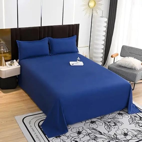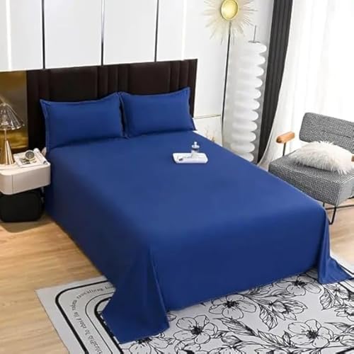 طقم ملاءة سرير مسطحة من المايكروفايبر من سنوز، (لون كحلي، مقاس 1.80×2.20 م) قطعتين