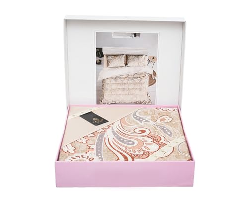 ملاية سرير من الساتان وكيس مخدة مطبوع من دهب لكشري هوم، مجموعة من 5 قطع، 1