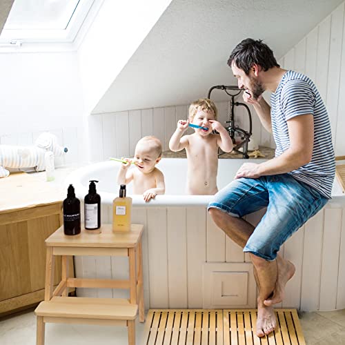 - السلامة - كرسي الحمام الخشبي هذا مزود بوسادة مضادة للانزلاق لكل قدم، مصنوع بحرفية من الخشب الصلب، يضيف الثقة والثبات إلى خطوتك لمساعدتك على الوصول بأمان إلى خزائن المطبخ ورفوف الكتب ورفوف الخزانة وأكثر من ذلك. يتم صقل الخشب بسلاسة وتثبيته بمسامير دائرية لمنع طفلك من الاصطدام به والتعرض للأذى.