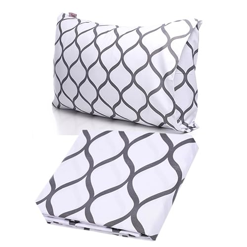 ملاية سرير مثبتة (تصميم موجات بيضاء) 1 م × 2 م + كيس مخدة واحد مجاني