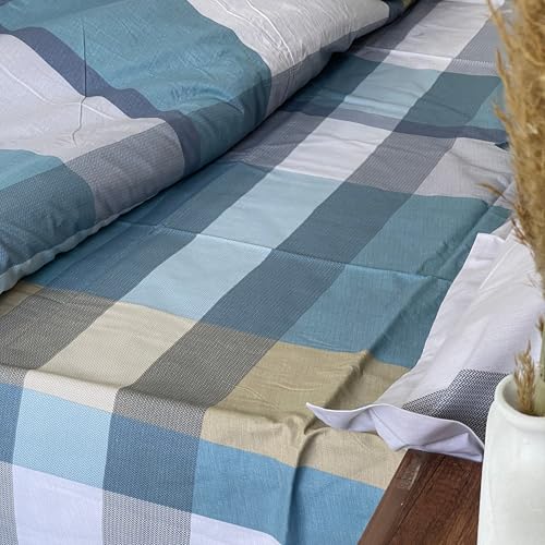 طقم ملاءة سرير مطبوع بحواف أستك من موني هوم، مقاس كينج 2.40 × 2.60 متر، لون بيج؛ أزرق؛ تصميم هندسي