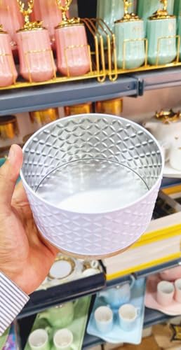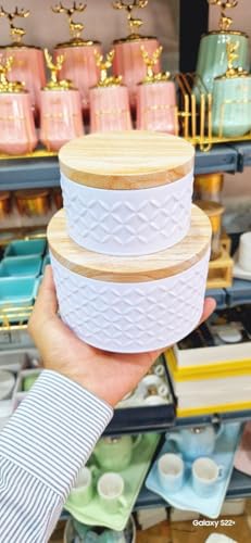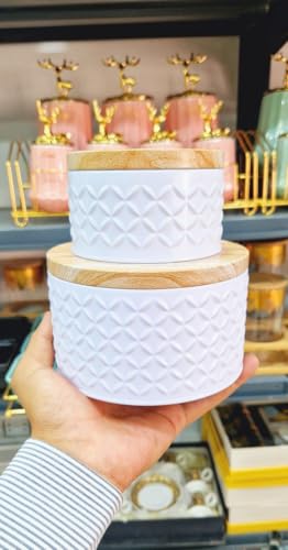علب تخزين معدنية للديكور مع أغطية من الخشب، نقشة الماس الأبيض، مجموعة من 2 قطعة، حاويات معدنية دائرية للحلوى (جم)