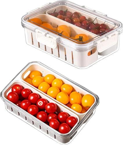 صندوق تخزين طعام للثلاجة، مصنوع من البلاستيك، بقسمين منفصلين وغطاء، مع فاصل قابل للإزالة