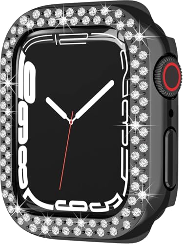 جراب حماية ممتص للصدمات من فكرا متوافق مع ساعة ابل سلسلة 8 و7 مقاس 45 ملم مصنوع بلاستيك البولي كربونات مرصع بالالماس الكريستالي اللامع لساعة 8/7 اسود