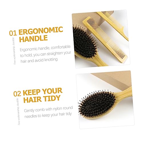 فوميز. امشاط متشابكة بشعيرات للنساء، فرشاة خشبية، مشط حلاق، مشط تدليك فروة الرأس، مجموعة من الخيزران، مشط ميس بيج من قطعتين