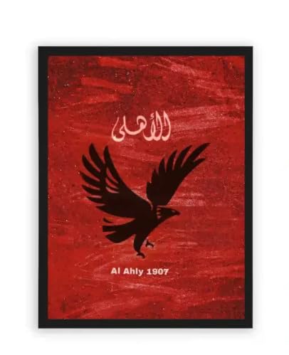 - مزايا التصميم: لوحة فنية جدارية مذهلة تتميز بشعار نسر الأهلي الأيقوني على خلفية حمراء جريئة مع خط عربي، مثالية لعشاق الرياضة.