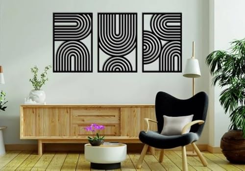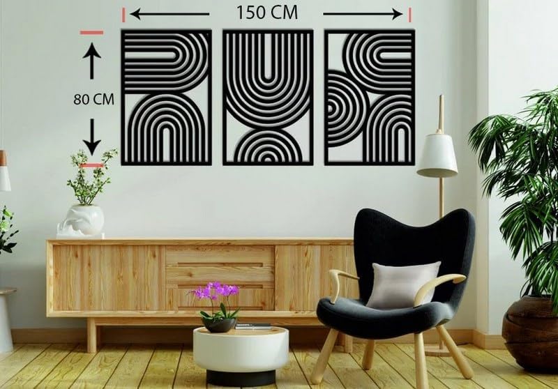 تابلوه حائط فني من الخشب عصري بتصميم هندسي بنمط القرون الوسطي مقاس 80×50 3 قطع أسود