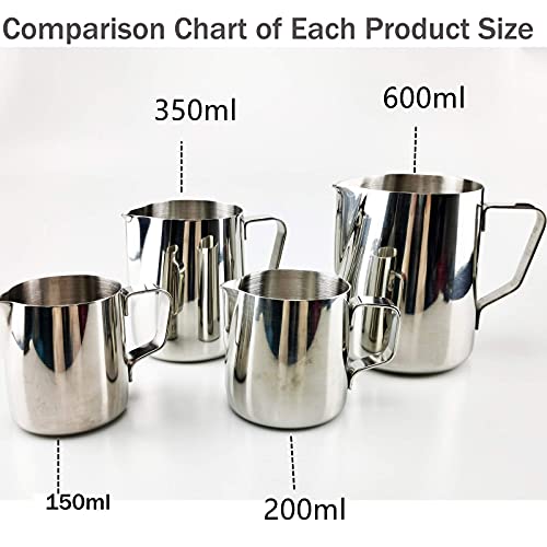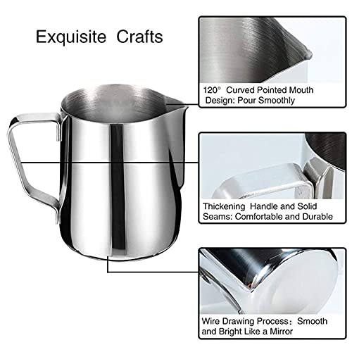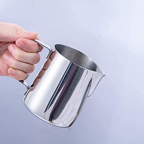 شفشق لصنع رغوة اللبن، شفشق من الفولاذ المقاوم للصدأ سعة 350 مل للتسخين بالبخار وعمل رسومات الباريستا لتحضير الاسبريسو والكابتشينو واللاتيه - لون فضي