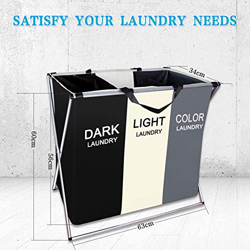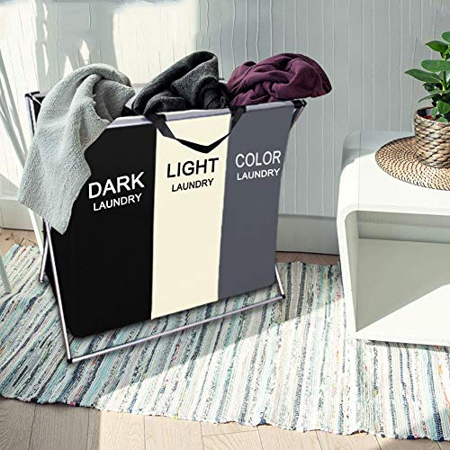 - تصميم مقسم - تحتوي سبت الغسيل هذه على 3 مساحات تخزين تسمح لأفراد عائلتك بتنمية عادات التصنيف مع مساعدتك على التمييز بين الملابس المختلفة وتوفير الوقت.